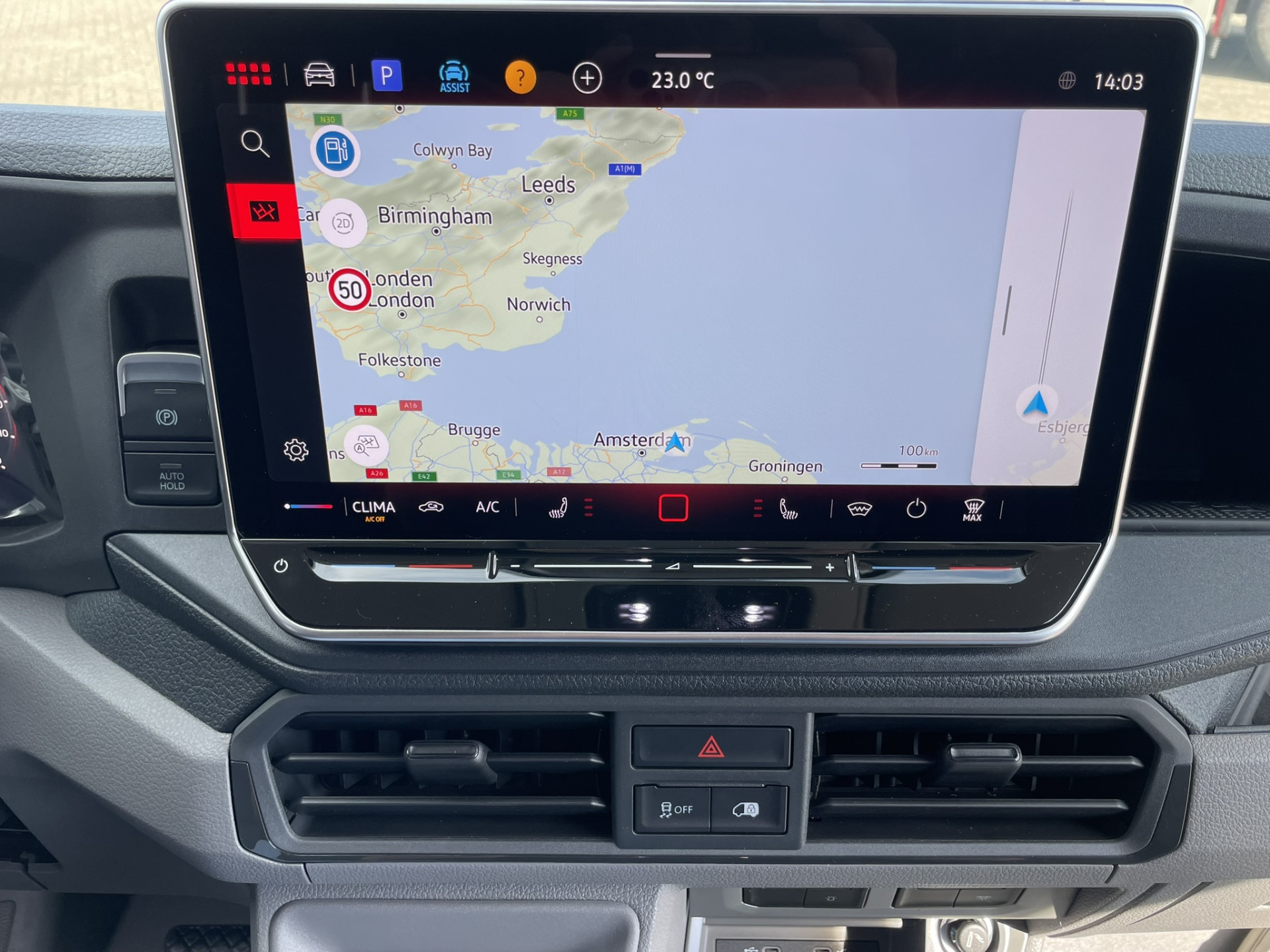Essential uitvoering: 12V-stopcontact, pennenbakje en 4 bekerhouders in dashboard